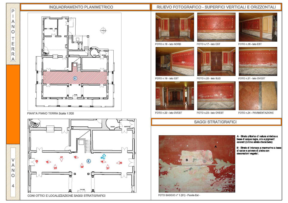 Il progetto di conservazione ha riguardato tutte le superfici verticali e orizzontali interne, le superfici esterne e i serramenti.